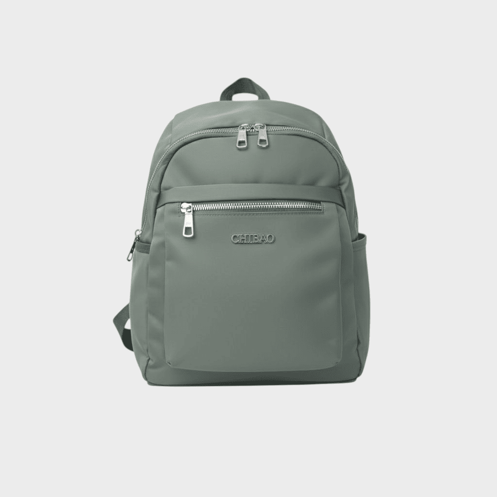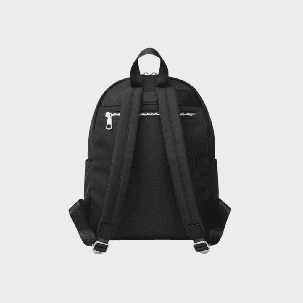 - Exterior: Cierre principal, 2 bolsillos frontales con cierre, 1 cierre trasero, 2 bolsillos laterales