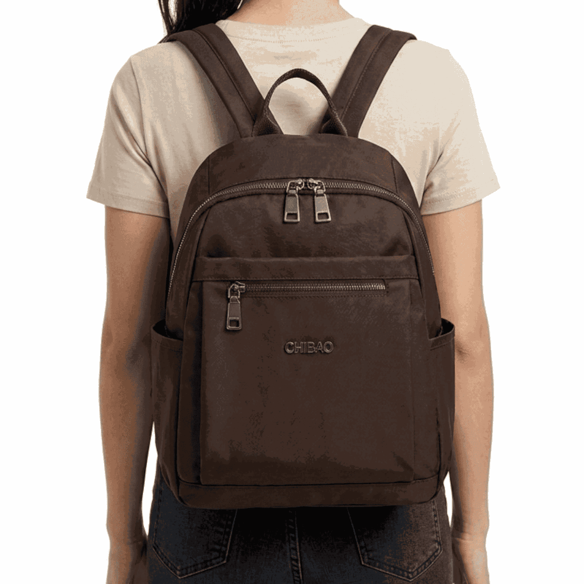 - Descripción: Bolsillo principal con compartimientos y 2 bolsillos con cierres internos. Presenta 3 cierres externos. Porta botellas en ambos lados
