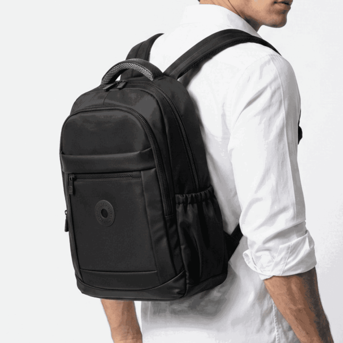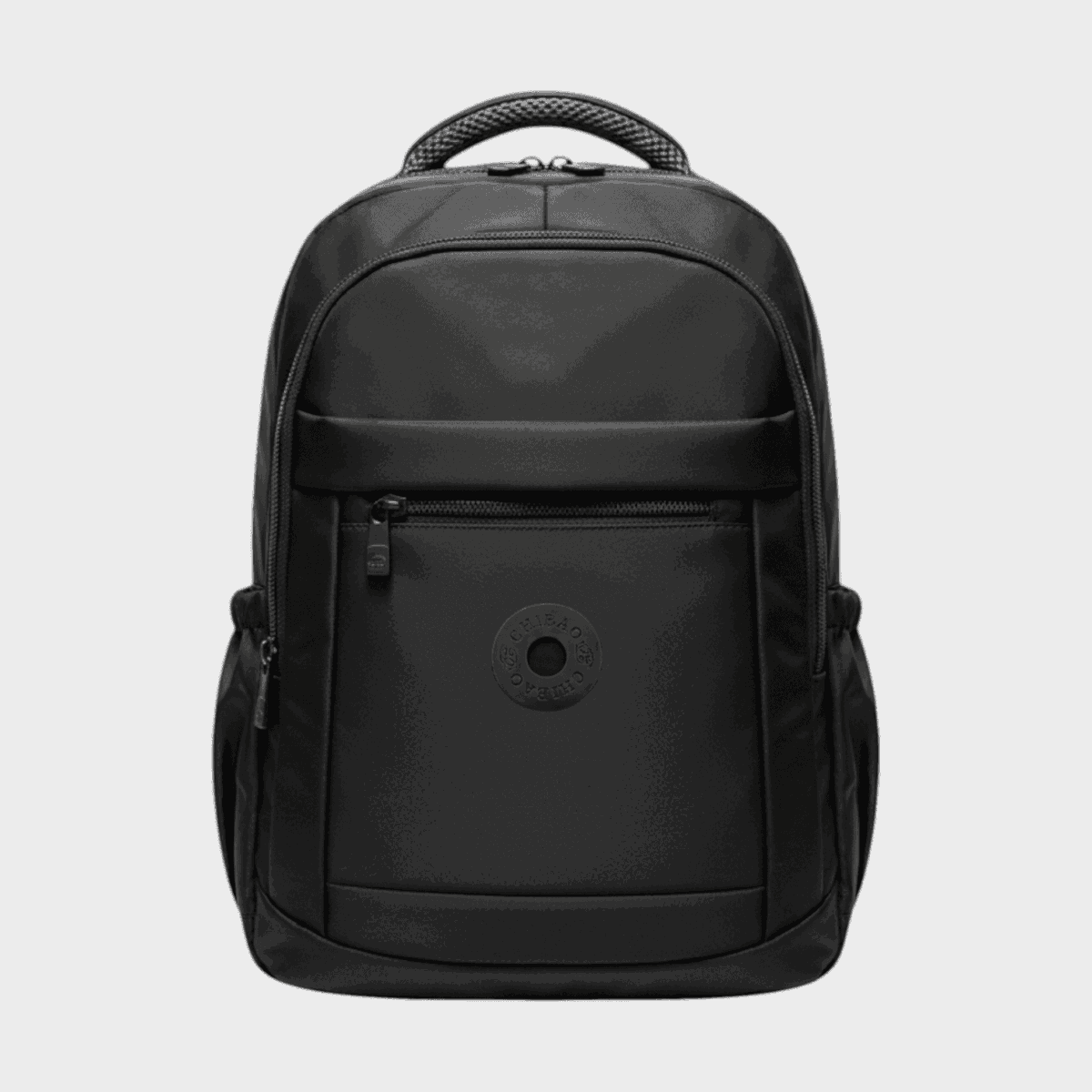 - Descripción: Bolsillo principal con 1 bolsillo interno con cierre, compartimientos. Presenta 5 cierres, 1 posterior, 1 porta notebook. 3 delanteros. Manijas acolchonadas. Porta botellas en ambos lados. Sujetador de valija.